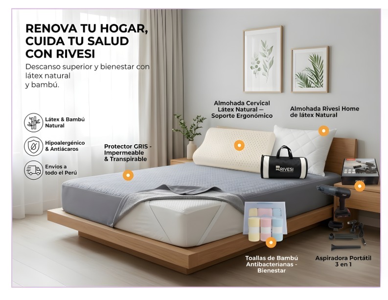 - Tecnología Híbrida: Núcleo de látex natural (90% ± 2%) y recubrimiento de fibra de bambú.