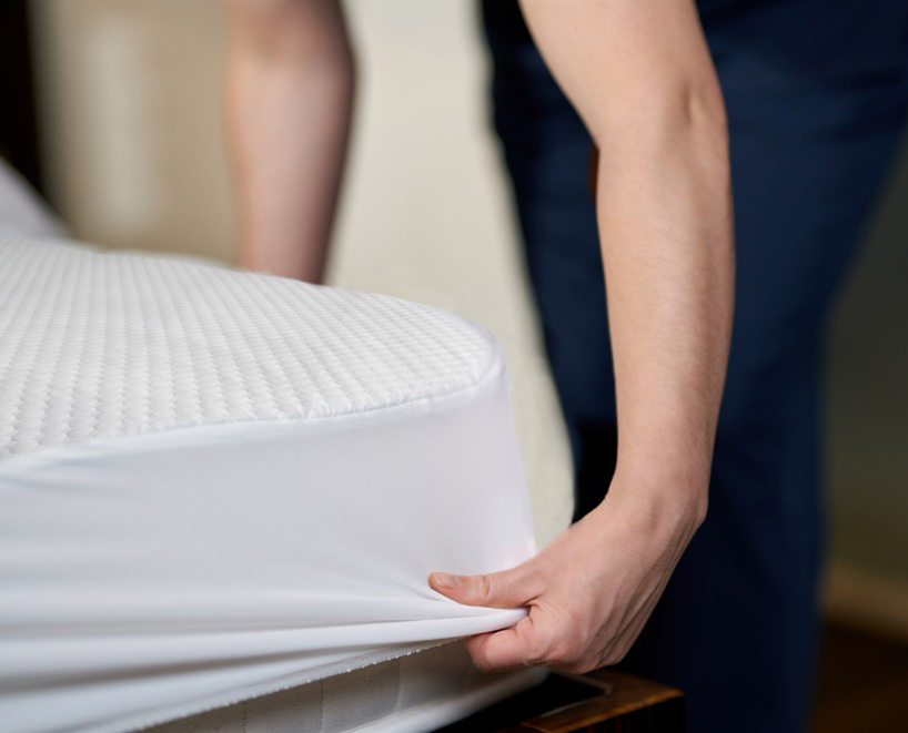 Se coloca sobre el colchón como una sábana ajustable, creando una barrera invisible pero eficaz. Está fabricado con materiales resistentes y suaves al tacto, que no generan ruido ni incomodidad al dormir.